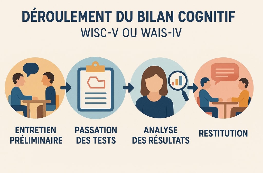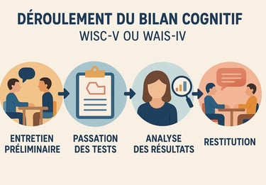 Un bilan psychologique est une évaluation globale ou plus spécifique du fonctionnement d'une personne (cognitif, émotionnel, comportemental) à l'aide d'outils standardisés. Il permet de mieux comprendre les forces et les difficultés, sans poser d'étiquette.